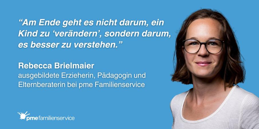 "Am Ende geht es nicht darum, ein Kind zu 'verändern', sondern darum, es besser zu verstehen." Rebecca Brielmaier, ausgebildete Erzieherin, Pädagogin und Elternberaterin
